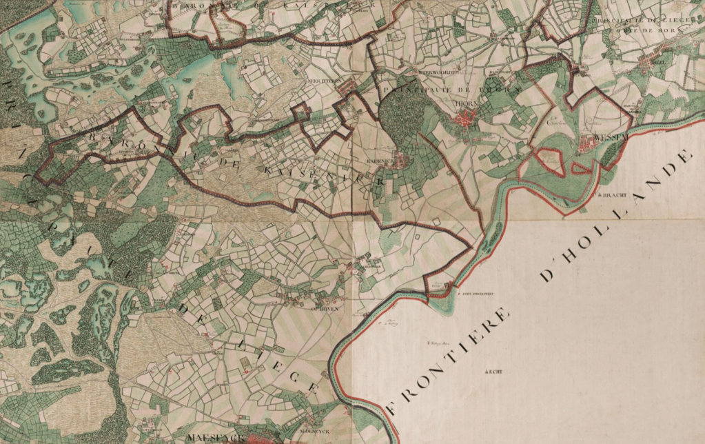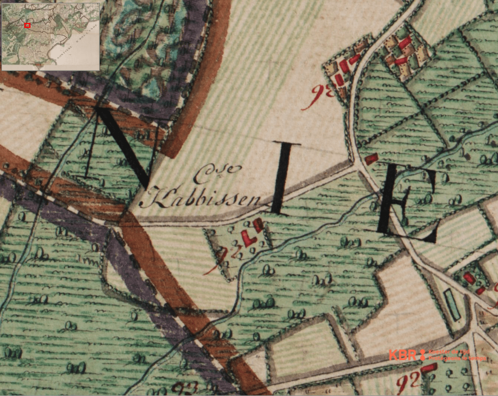 Reeds in 1770 werd op de Ferrariskaart de boerderij vermeld onder de naam “Cense Kabbissen”. Getuige hiervan is de Ferrariskaart die je hieronder vindt en de detail ervan. De boerderij was een deel en gelegen op het grondgebied van de “Baronie van Kaisenick”.